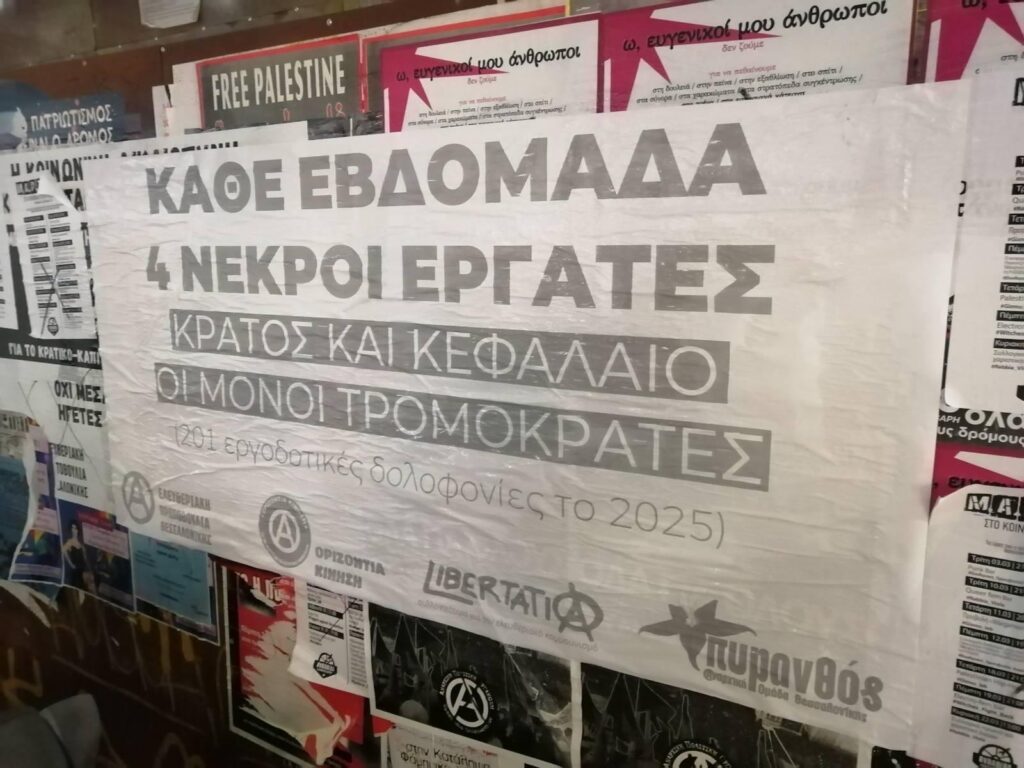 Την χρονιά που μας πέρασε, το 2025, οι καταγεγραμμένοι θάνατοι σε χώρους εργασίας ξεπέρασαν τους 201. Η φετινή χρονιά ξεκίνησε με τον ίδιο τρόπο, με πιο χαρακτηριστικό παράδειγμα τις 5 νεκρές εργάτριες στην βιομηχανία Βιολάντα στα Τρίκαλα.