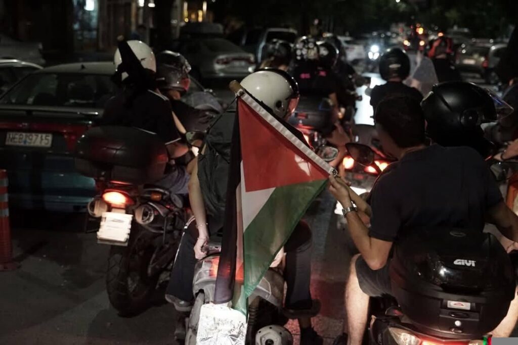 Σήμερα, Δευτέρα 2/6, αναρτήσαμε γιγαντοπανό αλληλεγγύης με τον Παλαιστινιακό λαό που υφίσταται την γενοκτονία της εποχής μας από το Κράτος του Ισραήλ, στα κάγκελα της Αρχαίας Ρωμαϊκής Αγοράς