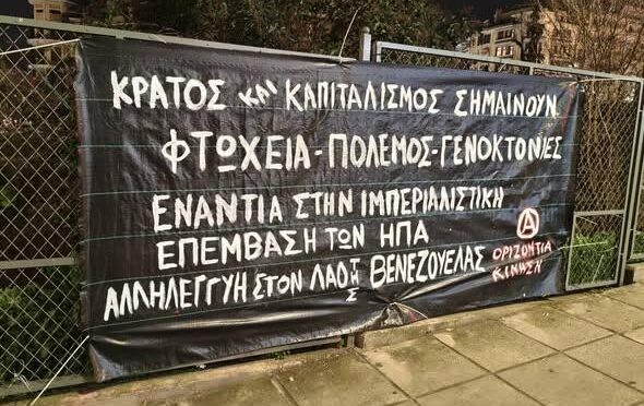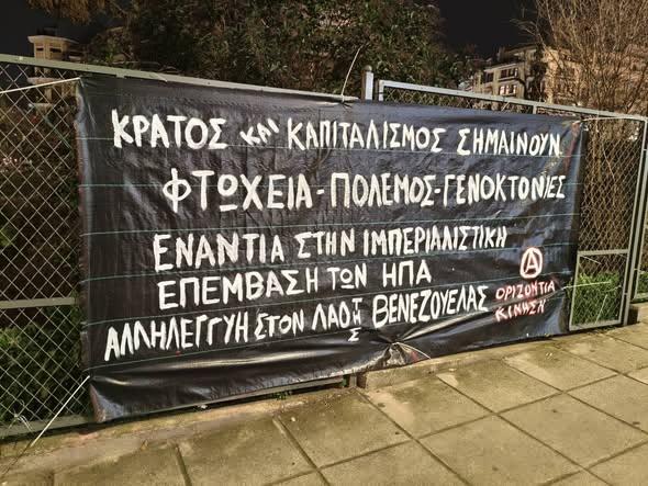 Ως ελάχιστη ένδειξη αλληλεγγύης στην εργατική τάξη και τους λαούς της Βενεζουέλας, τοποθετήσαμε δύο πανό σε κεντρικά σημεία της πόλης.