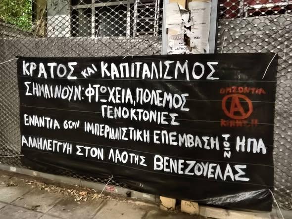 Από μεριάς μας, ως αναρχικοί, αν και φυσικά δεν μπορούμε και δεν θέλουμε να στηρίξουμε καμία κυβέρνηση και κανένα κράτος, περισσότερο ή λιγότερο “δημοκρατικό” ή “λαϊκό”, στεκόμαστε καταφανώς ενάντια στην ιμπεριαλιστική αυτή επέμβαση των ΗΠΑ και σε κάθε τέτοιου είδους παρέμβαση “μεγάλων δυνάμεων” στα εσωτερικά τρίτων χωρών, όποιον μανδύα κι αν ενδύεται. Γνωρίζουμε πως οι επιπτώσεις τέτοιων επεμβάσεων είναι πάντα η φτώχεια, η πείνα, ο πόλεμος και ο θάνατος και πως αυτές επηρεάζουν κυρίως τα καταπιεσμένα και εκμεταλλευόμενα κομμάτια της κοινωνίας και όχι τις ελίτ. Οφείλουμε, μαζί με την τάξη μας, να οργανώσουμε τις δυνάμεις μας και να αγωνιστούμε ενάντια στον πόλεμο, τον ιμπεριαλισμό, τους εθνικισμούς, προς την κατεύθυνση της Κοινωνικής Επανάστασης.